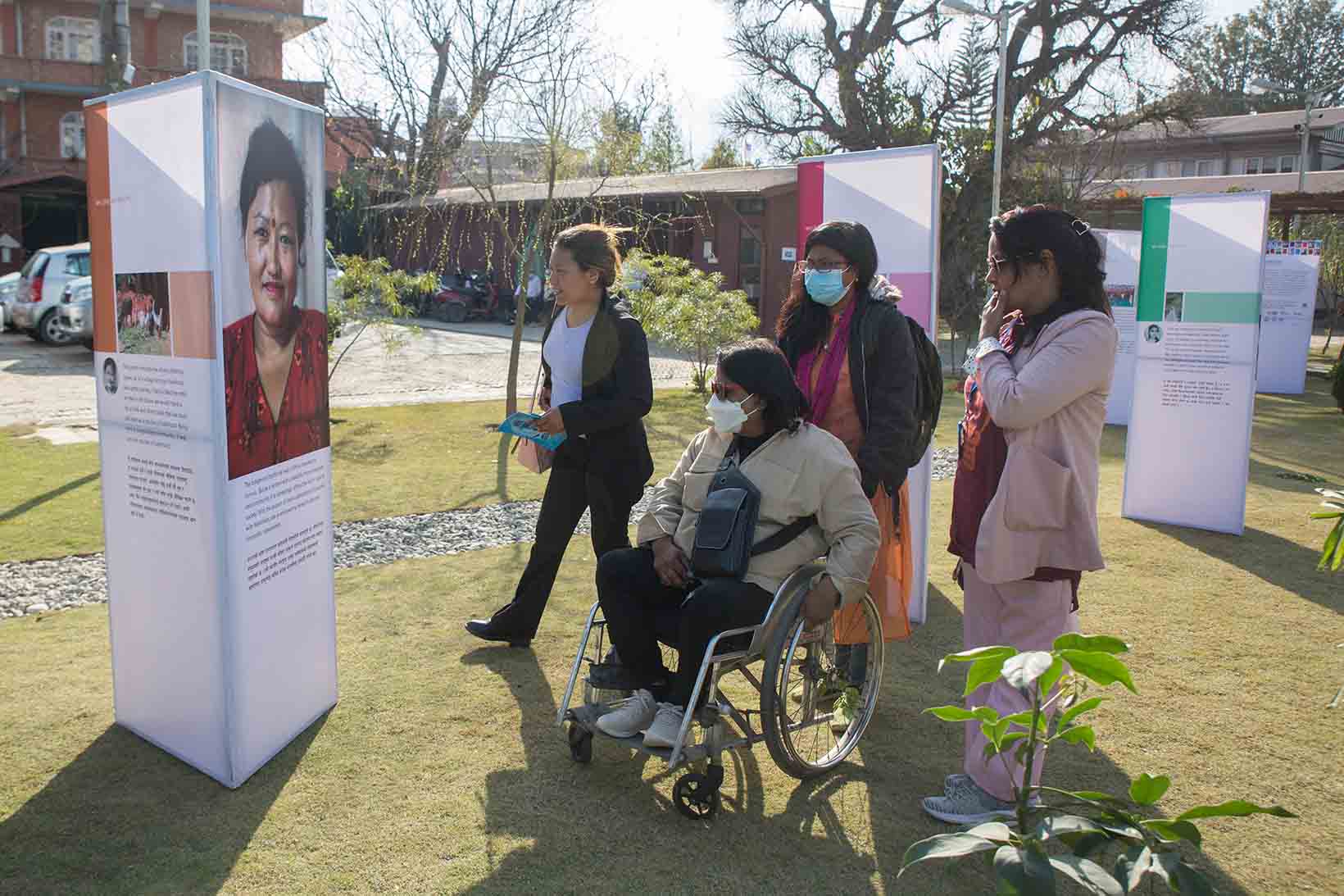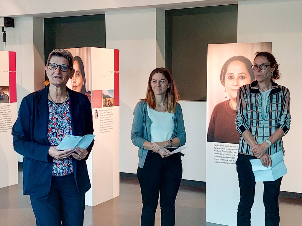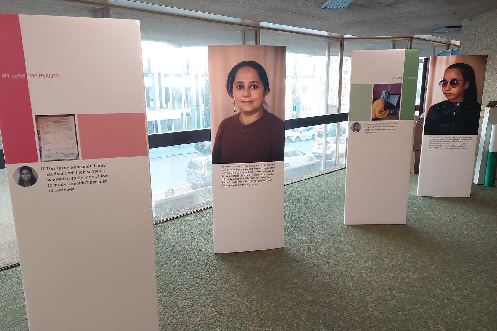 Daraus entstanden ist die Ausstellung My Lens My Reality. Sie zeigt die Geschichten von zehn Frauen mit Behinderungen in Nepal. Zu ihren Porträts gehören auch die Fotos, die sie selbst aufgenommen haben. Darin erzählen sie ihre Geschichte und schildern die Hindernisse und Wegbereiter für ihre Inklusion in die nepalesische Gesellschaft. Als Frauen, Menschen mit Behinderungen, Angehörige von Minderheiten oder aus armen Familien sind sie mit vielfältigen Diskriminierungen konfrontiert und kämpfen um ein menschenwürdiges Leben. Die Situation und die Bedürfnisse von Frauen mit Behinderungen in Nepal sind unzureichend erforscht, werden unterschätzt und nicht ausreichend anerkannt. Ihre Geschichten zeigen, dass Frauen mit Behinderungen durch Zugangsmöglichkeiten, Wissen, Unterstützung und soziales Bewusstsein in allen Lebensbereichen eine substanzielle Teilhabe ermöglicht werden kann und sie einen Beitrag zur Gesellschaft leisten können.