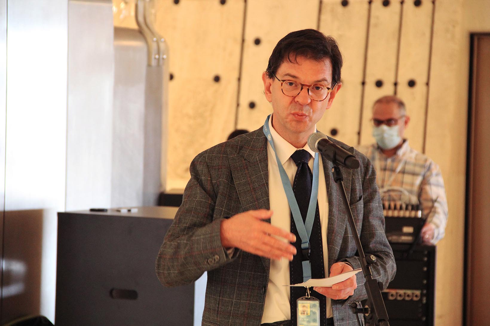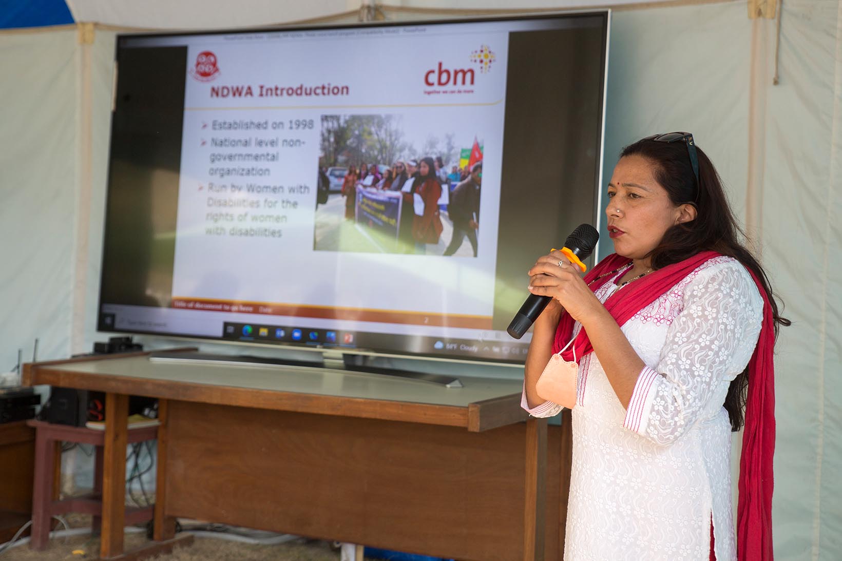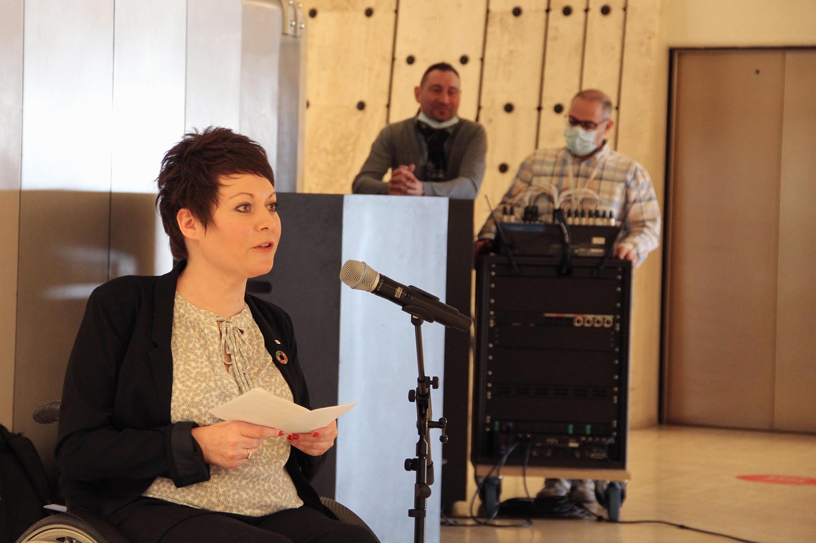 Mirjam Gasser, Leiterin Advocacy bei der CBM Schweiz, eröffnet die Ausstellung im Namen des SDDC.