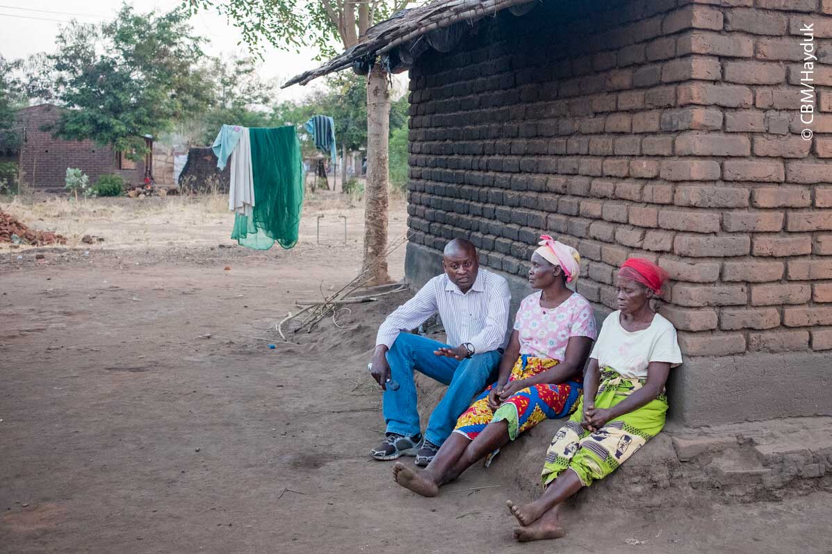 Fachkräfte besuchen die Dörfer, untersuchen vor Ort und führen einfache Behandlungen durch. Steve Simwaba erläutert Lydia Maundé die Operation am Grauen Star – und dass sicher kein Auge herausgenommen werde.